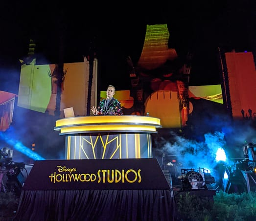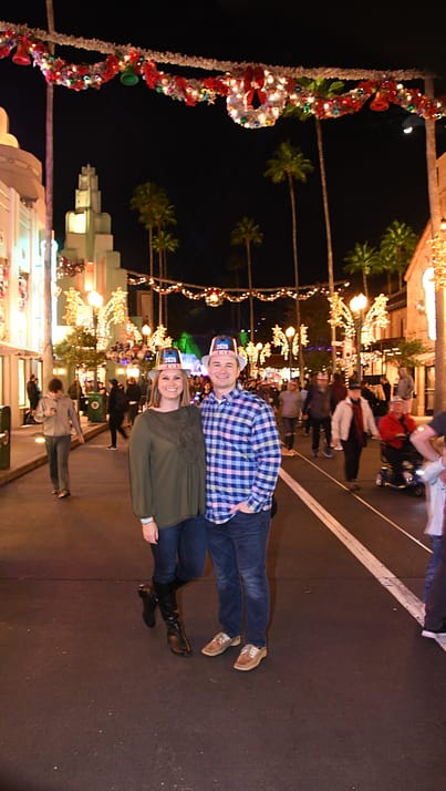 After The Brown Derby, I had a late Fast Pass so that we could get one ride in without a wait. Wait times for all other rides were super low, which was great knowing that if we wanted to wait, we could have. However, I’m a line snob and can also visit the parks any time, so we rode our one fast pass and then made it back to the front of the Chinese Theater where the real party was happening! Before, in between, and after the showings of Jingle Bell, Jingle BAM and Star Wars: A Galactic Spectacular, you can dance it up with a DJ at Center Stage starting at 7 PM. This party lasts until midnight and is a great place to be to enjoy the atmosphere at Hollywood Studios.