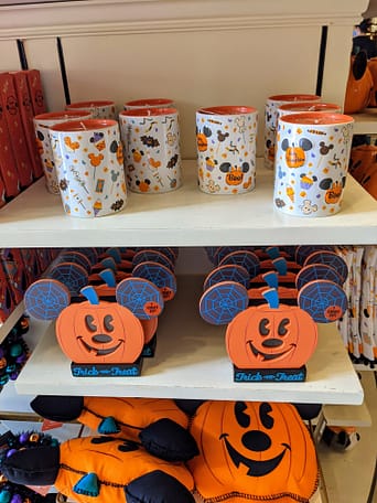 Halloween-themed merchandise is now available all around the park at select locations. I saw the cutest spirit jerseys, Loungefly backpacks, Minnie ear headbands, home decor, and more! (I got the CUTEST pumpkin spiced candle and Mickey pillow from the Emporium at Magic Kingdom- I couldn’t resist!)