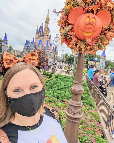 For the first time ever, guests can dress up in costume when visiting Magic Kingdom! Say whaaaat?! Usually, this is reserved just for Mickey’s Not So Scary Halloween Party, but this year, guests of all ages can wear costumes during Magic Kingdom’s regular park hours from September 15th to October 31st. As a reminder, guests cannot wear costume makes. Only children younger than 14 years old are allowed to wear costume marks. It’s also important to note that approved face coverings are still required during your visit. You can’t tell in my photo, but I’m wearing my favorite Hocus Pocus shirt that I love to wear all season long! I saw so many people embracing the new normal and had on such cute and creative costumes! Come and dress up or wear a cute themed t-shirt like I did. It just adds that much more fun and excitement when planning your trip right now!