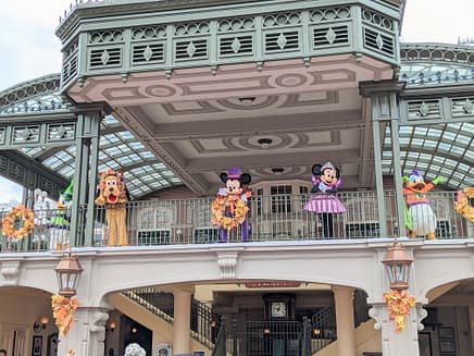 Fall decor is a little bit more minimal compared to years past, but there is still plenty to see and get photos of! You’ll see pumpkins all down Main Street USA, as well as other fall decor, hung along the train station. My favorites are the pumpkin-themed wreaths that hang on the lampposts and light up at sunset!