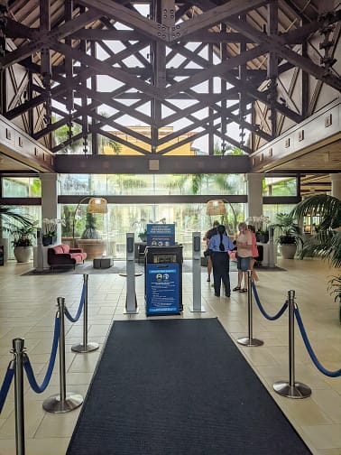 When you walk into the lobby, you will be required to get a temperature check. A Universal team member will greet you once you enter and resort and will take your temperature right away. You will be given a colored wrist band that changes daily. You are required to get a temperature check each day in order to get a new colored wrist band. This wrist band shows that you have had your temperature check for the day and are cleared for the parks as well for that day. If you are not staying on property and come on site from the water taxi, another team member at a different location will also be available to check your temperature in order for you to be able to get into the resort.