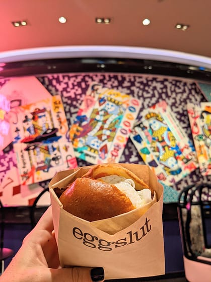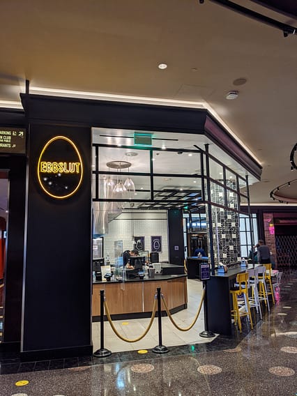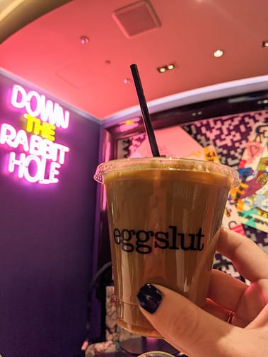 One of my favorite places inside the Cosmopolitan Hotel is Eggslut! They have the BEST egg sandwiches. Usually, the lines get SUPER long, so if you are planning to visit, keep that in mind. Dan and I had such an early flight the next day, we got to Eggslut as soon as it was open(7 AM) and were the first in line! Soon after, things started to pick up and the line was growing! The Bacon Egg and Cheese sandwich is SO good with their cold-brewed coffee. If you have time to stop here, it’s so good. It makes for great hangover food too, ;)