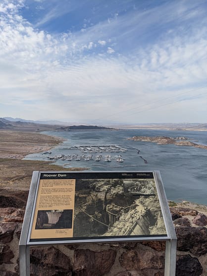 Another “‘Must Visit” that isn’t too far from Las Vegas, is the Hoover Dam! The Hoover Dam is about 40 minutes from Las Vegas (with traffic). The Hoover Dam sits right on the Nevada/Arizona state line and is an easy stop on the way to Sedona or the Grand Canyon from Las Vegas. Due to COVID, The Hoover Dam was actually closed when we were driving through, which I was super disappointed to read. I had visited back when I was about 12 years old and Dan hadn’t been since he was really little, so we wanted to see it again. However, at the time of this post (10/21/21) the Hoover Dam is reopened to the public. People are able to access all open areas and visit the Mike O’Callaghan-Pat Tillman Memorial Bridge plaza and walkway. The visitor center will remain closed with no tours or exhibits available.