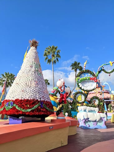 Celebrate the Grinchmas season with the Whos and the Grinch at Islands of Adventure! You’ll find the Whos on stage right outside of the All The Books You Can Read Bookstore in Seuss Landing. Meanwhile, the Grinch awaits you inside the All The Books You Can Read Bookstore where he will take your photos and interact with you! Once your photo shoot is over, you will be able to get your selfie with him as well.
