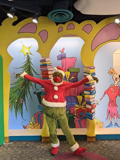 You do have the option to purchase the photos that the Grinch takes, but if you choose to just do a distanced selfie with him, you can do that too! (That’s what I did!) If you don’t have a reservation, they do have a stand by line, but they only accept people based on the number of reservations inline/who has shown up for their reservation. They honor the reservations first over the stand by line. It’s totally free to do (unless you want to purchase the professional photos) and it’s a fun way to meet the Grinch this year!