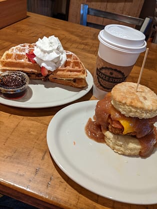 Sunday was our check out day! We started our morning walking to Maple Street Biscuit Company for breakfast. The line can look scary when you walk up thinking it will be a while before you can order. Due to social distancing, the line can get longer than it actually is. They move quickly inside and there is tons of seating. I had the chicken and bacon biscuit and it was SO good! Dan enjoyed his waffle as well.