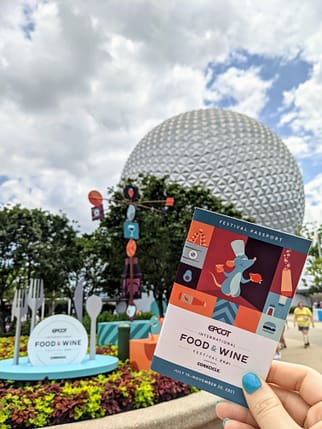 When visiting Epcot, you’ll want to pick up a festival passport located at the front entrance of the park and at the guest relations locations. The festival passports show all the food and drink booths, merchandise locations, and entertainment that is scheduled each day.