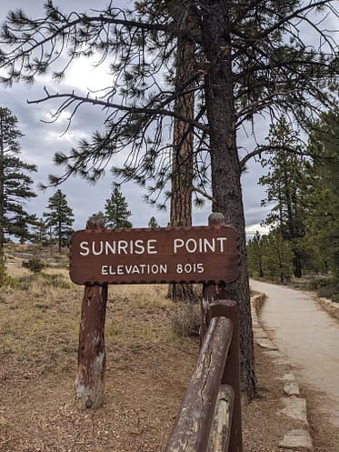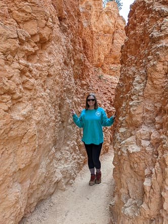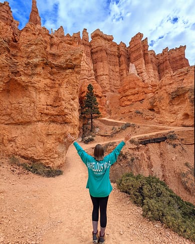 The Queens Garden Trail starts at Sunrise Point. This point is on the Rim Trail and is an easy-to-walk trail with amazing views of Bryce Canyon It’s a little less than a mile down into the valley, but it goes so fast with so many gorgeous views to take in. Be sure to watch where you step because there is a horse trail. ;)