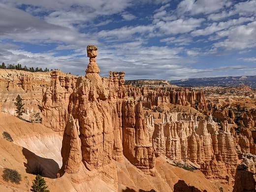 Bryce Canyon is full of hoodoos! Hoodoos are tall, thin spires of rock that protrude from the bottom of an arid drainage basin. Hoodoos are found all around the world, but you’ll find the most in Bryce Canyon, which is so cool!. Hoodoos are the main display of this amazing landscape. While Bryce Canyon may be smaller and more compact than the Grand Canyon, this is still a beautiful site to see and one of my favorites.