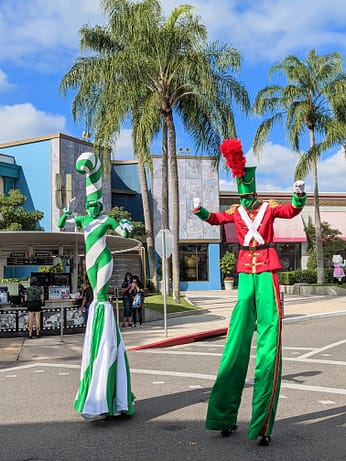 Find stilt walkers, characters, singers, and dancers all throughout the park! You’ll see them dressed in their holiday best as well as hear seasonal classics!