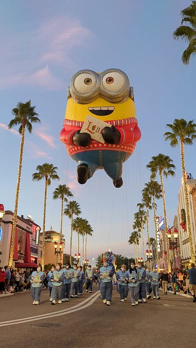 Universal’s Holiday Parade starts on Hollywood Blvd every night at 5:30 PM. When the park closes at 6 PM, the parade will begin at 5 PM. This parade has large balloons that float through the air throughout the park as well as character floats and dancers. You will see some of your favorite characters like Minions from Despicable Me, Shrek, and Madagascar films. This parade is about a half-hour long, so it really is worth seeing! Be sure to get a spot about an hour prior to the parade start time so that way you get a front-row seat and aren’t left scrambling to find a spot last minute. I love to sit in front of the Jason Bourne experience on Hollywood Blvd where the parade first starts to get great views down the street and with all the trees lit up. It is such a pretty sight to see! Remember, entertainment, dates, and times are subject to change without notice.