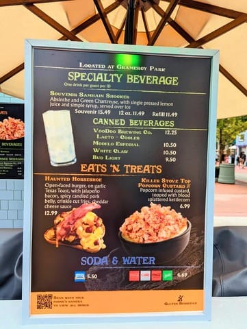 Halloween Horror Nights has many great food and beverages that are not normally found throughout the parks during the day. There are special food and beverage booths and stands set up throughout HHN for your enjoyment. Be sure to try the twisted tater or pizza fries! You won’t be disappointed!