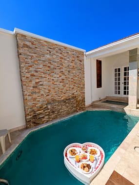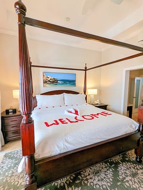 All rooms and suites include air conditioning, a ceiling fan, a king size bed, hair dryer, telephone, iron, ironing board, private bath and shower, safe deposit box, iPod docking stations, cable TV, and coffee maker. Some of the best rooms for honeymoons at Sandals Ochi are the Romeo and Juliet One Bedroom Villa Suites with a Private Pool Sanctuary. Not only do you get privacy, but you’ll also get a Butler when you stay in the Butler Village. Check out the special touches that they can do for you while on your honeymoon: