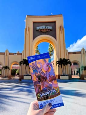 Universal’s Mardi Gras festivities are included in your theme park admission ticket for Universal Studios. As long as you have a ticket to get through the Universal Studios turnstiles on a Mardi Gras event date, you have access to everything that is included with Universal Mardi Gras. (Note: Some annual passholders are blocked out of visiting Universal Studios on concert nights so be sure to check your pass for current blockout dates before visiting Universal Studios)