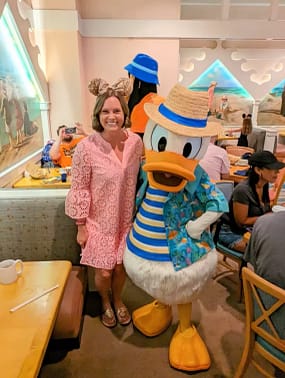 Minnie’s Beach Bash Breakfast features Minnie Mouse and her friends including Donald and Daisy Duck and Goofy. You’ll meet them in their beach-inspired looks and they are SO cute! You’ll be able to get some great photos and autographs with each of them as they come through the restaurant. They even stop to do their beach bash dance and it’s so cute! The interactions with the characters were great. Even though we were only there for about an hour, the characters came around more than once! Note: Characters only appear during breakfast and appearances are subject to change.