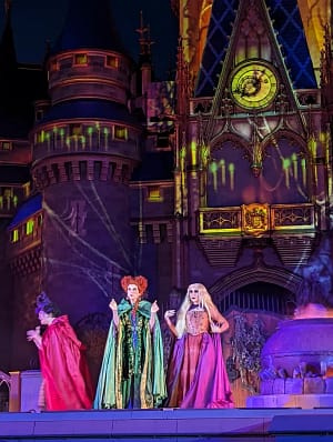I LOVE Sanderson Sisters! In the Disney movie, “Hocus Pocus, the Sanderson Sisters return to the mortal world for one night during the Halloween season. The sisters take over Magic Kingdom to throw the best evil Halloween party! The show features dancers, special guest villains, projections on the castle, and some of your favorite songs from the movie! There are 4 showtimes during the party in October: 7:40 PM, 8:35 PM, 10:45 PM, and 12:00 AM.