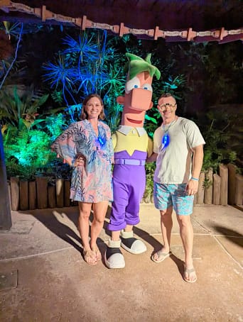You’ll also get to meet fun Disney Characters like Phineas and Ferb at Getaway Glen right near Leaning Palms. (Tip: Get your snacks and drinks after you meet them because you can’t hold food or drinks while meeting characters!) This year was the first year Phineas and Ferb came to H2O Glow so I hope they return in the future!