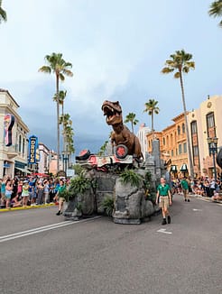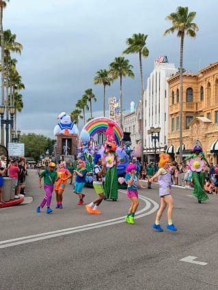 The Mega Movie Parade is Universal Orlando’s biggest parade that they have ever had. It features 13 floats and over 100 performers including dancers, skaters, and stilt walkers.