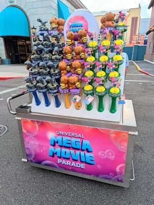 The Mega Movie Parade is the new daytime parade that has replaced the Universal Superstar Parade from 2022. This parade showcases multiple floats and characters from so many Universal movies including E.T., Back to the Future, Ghostbusters, Jurassic World, Kung Fu Panda, Depsicable Me, and more!