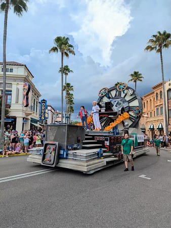 The Mega Movie Parade runs at Universal Studios on select dates through November 14th. Typically this will be every day, but there may be a few days that the parade won’t run. The time can change each day, so be sure to check the official Universal Orlando app on the day of your park visit to make sure you know the most up-to-date time for the parade. Also, be sure to note that the parade will not run in inclement weather. I went to see the parade on the first night that is was offered and it was delayed a few times due to lightning. The second night, the parade was cancelled due to the weather. Universal will try their best to run the parade, but sometimes it just can’t be possible if there is bad weather for a long period.