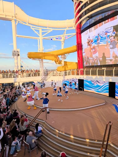 “Let’s Set Sail” is the deck party show that you’ll get to see when you leave Port Canaveral.