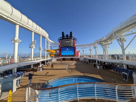 The pool decks have been reimagined for the entire family to enjoy while on the ship. You’ll find 6 pools that are different depths and sizes. The AquaMouse is the first attraction at sea. This is a water coaster with animated scenes and special effects that takes you through the upper decks of the ship.