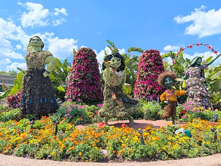There are topiaries of animals and all of your fun Disney characters. You’ll find displays in fun locations throughout the park including: