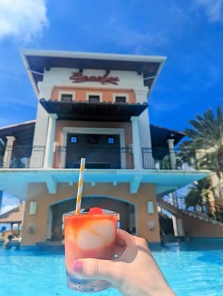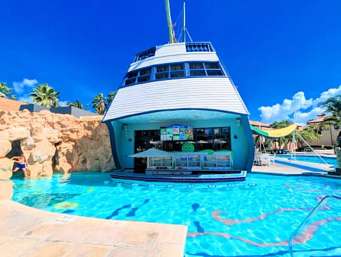 Find the only kid’s swim-up bar in the Caribbean! It is SO cute! The water park also includes waterslides, kid-friendly pools, a lazy river, water cannons, and a Surf Simulator